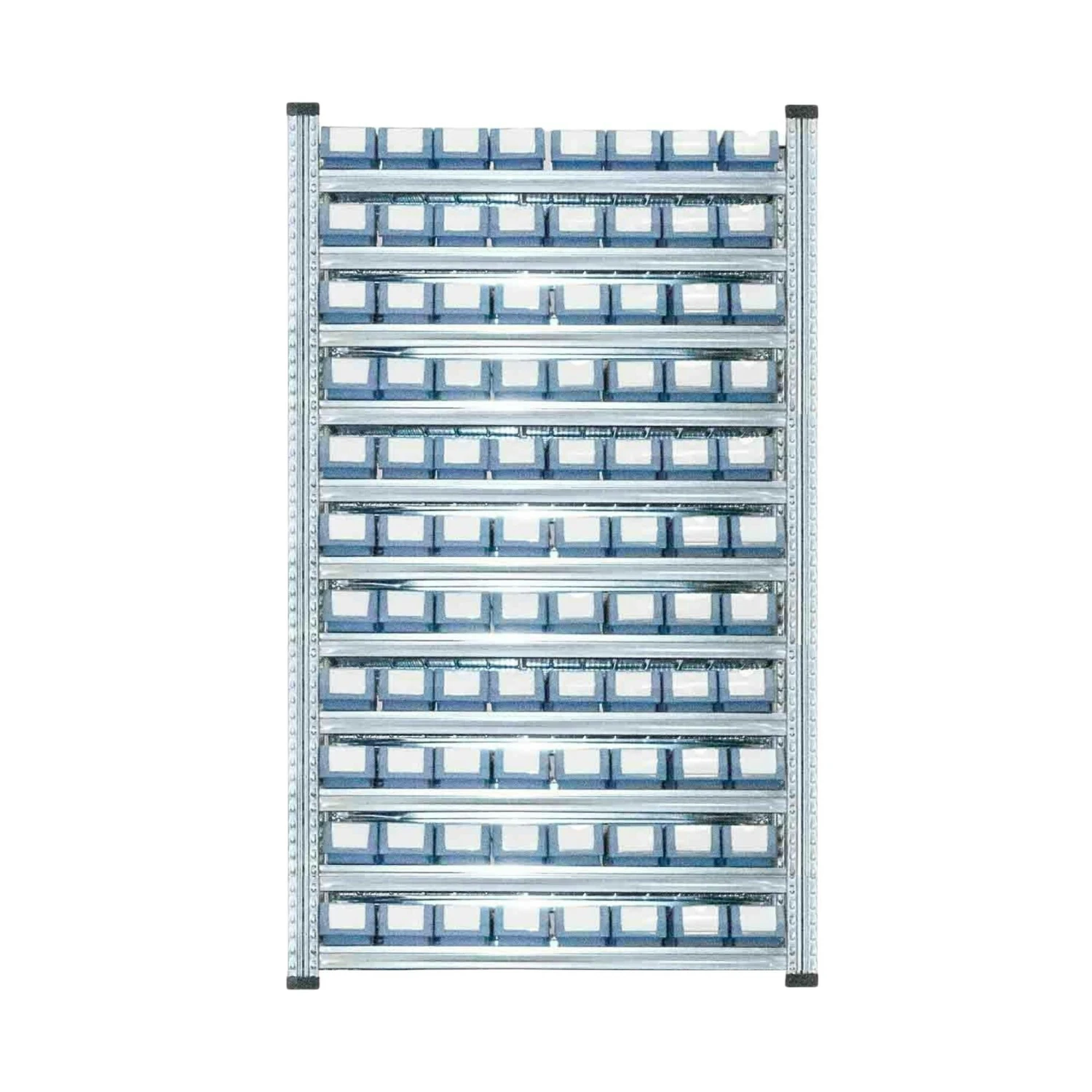 PROREGAL Fachbodenregal Mit 121x Regalkästen 500 SN | 11 Fachböden | HxBxT 197x142x60cm | Fachlast 180kg | Verzinkt
