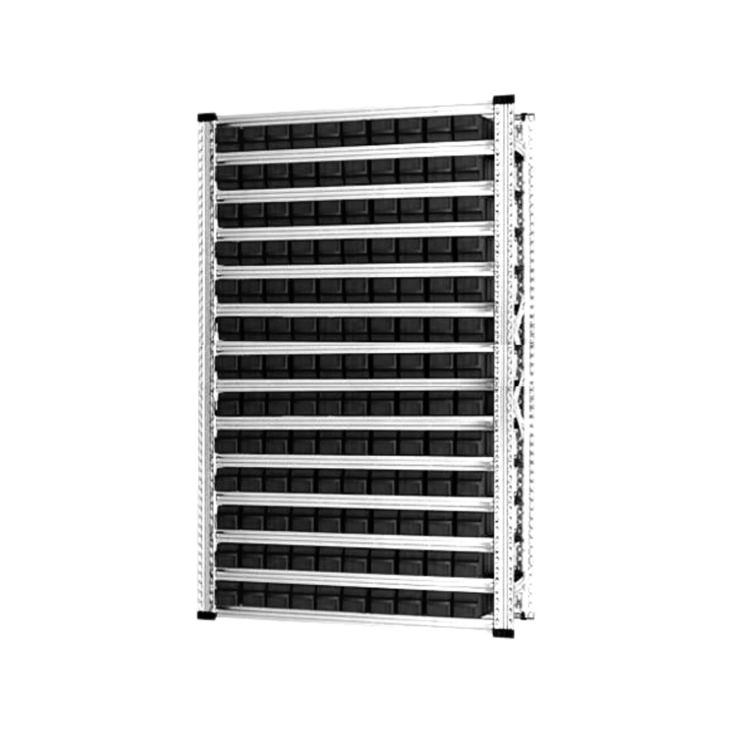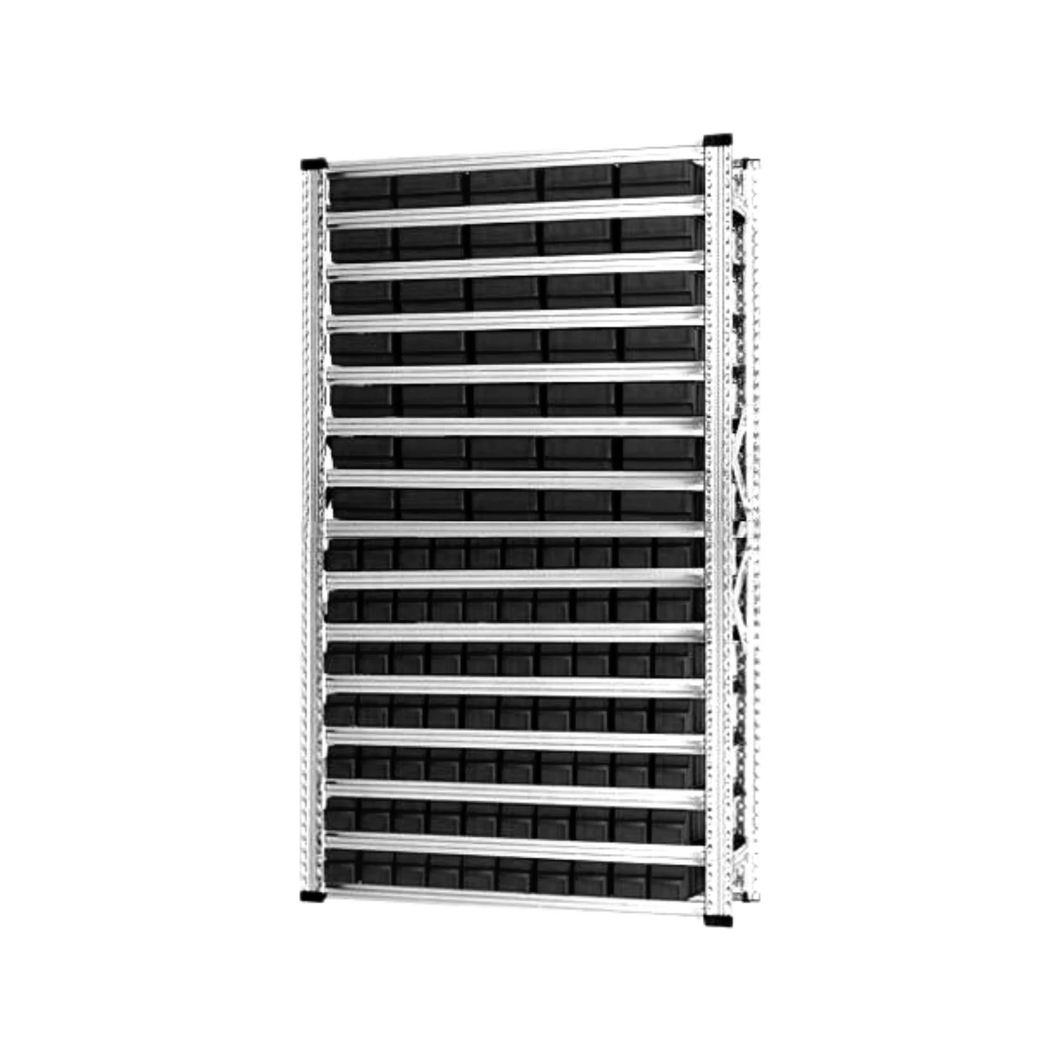 Stabiles Fachbodenregal für Industrieboxen inkl. 140x leitfähigen Industrieboxen 400S in schwarzAus zertifiziertem StahlblechTÜV-geprüft gemäß BGR 234Fachlast der einzelnen Fachböden von 235kg Leichte Montage